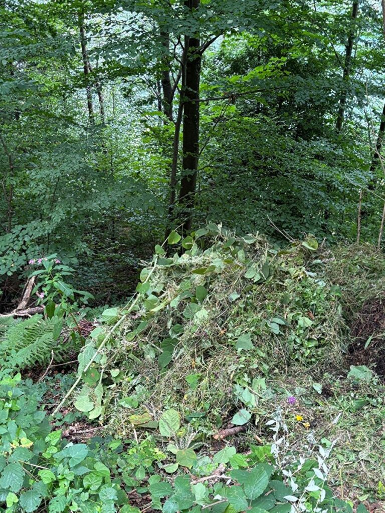 Leider stellen wir fest, dass Grüngut aller Art aus dem Garten, Rasenschnitt und sogar geschnittene Neophyten (Kirschlorbeer, Berufskraut, Sommerflieder, asiatische Staudenknöteriche etc.) immer wieder illegal in unseren Murger Wäldern „entsorgt“ werden.